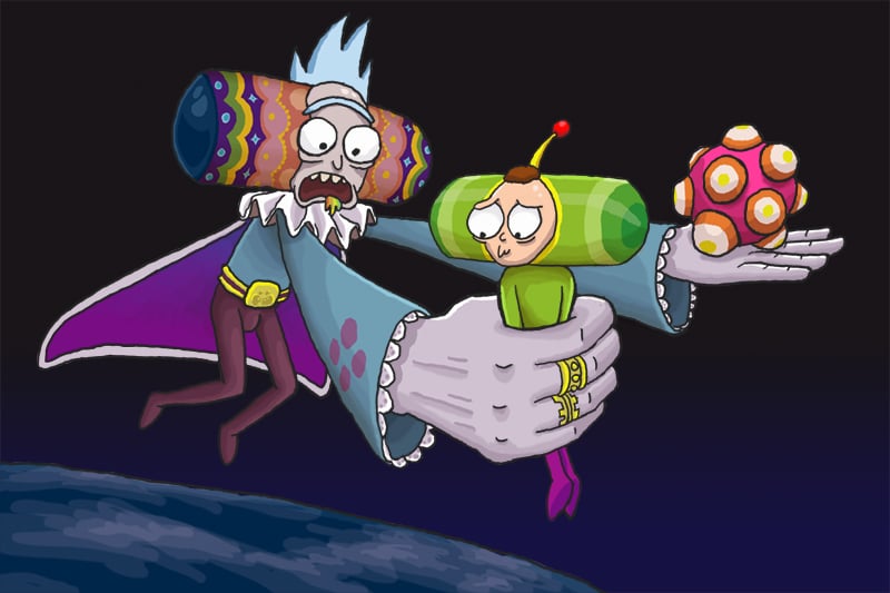 "I need you to take this Katamari, Prince of all Mortys. Take it stick whatever you can to it: food, trash, cars, pets, people... Just roll it all up and bring it to me. I'll use it to rebuild the stars. Don't worry about the people, Morty. They'll like being stars."